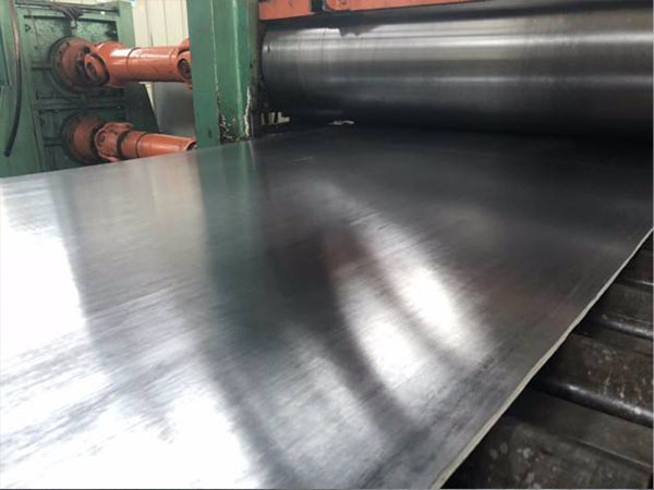 (3)斜軋的軋制方式。由于鉛板冷軋時會出現加工硬化現象.退火后的披箔軋制到一定的程度時,其軋制方向即縱向的屈服應力已大于其橫向的屈服應力,從而使變形量傾向于屈服應力較小的橫向,導致橫向的變形量增大.**終橫向出現了較大的寬展.此時極易出現裂邊。針對這種現象在冷軋披箔材時可采用斜軋的軋制方式以降低由于其軋制方向即縱向的屈服應力已過大而產生的軋制裂邊;同時既可充分利用橫向較大的變形量而加快板材的變形速度以縮短板材的軋制周期.又可充分利用橫向較大的寬展以加大其尺寸。有利于鉛板軋制的大尺寸化。